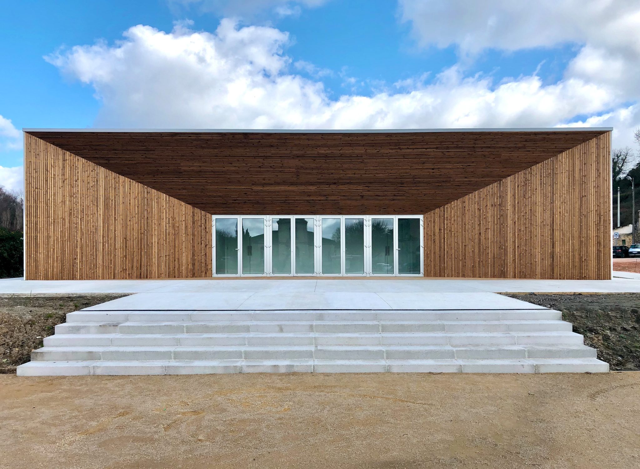 TeboPin Flam, een multiplex van 100% maritiem dennenhout, is gekozen als wandbekleding voor de polyvalente zaal in Le Paillet (33), die door het architectenbureau HOBO is gebouwd in het kader van een proactieve milieuaanpak die wordt gesteund door de Conseil Régional Nouvelle-Aquitaine.