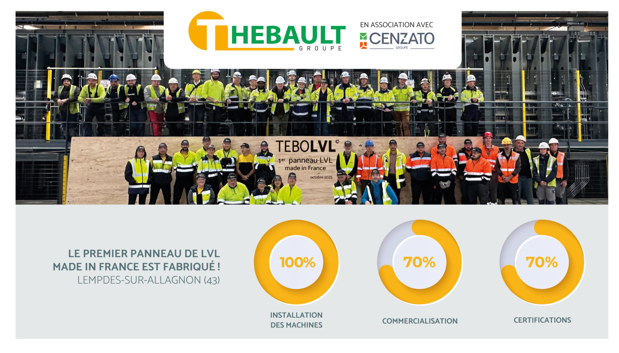 de production. Elle est synonyme de démarrage de la production de notre TEBOLVL®, matériau bois biosourcé attendu par les secteurs de la construction et de l’industrie.