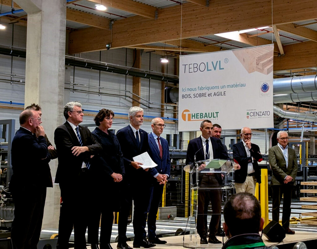ETI industrielle familiale française et leader du bois contreplaqué, le Groupe THEBAULT, associé au Groupe CENZATO, inaugure à Lempdes-sur-Allagnon (43) la première unité de fabrication de LVL (Laminated Veneer Lumber) en France et en Europe de l’Ouest. Avec cette unité, le Groupe THEBAULT, spécialiste du déroulage, poursuit son développement industriel dans la fabrication de produits d’ingénierie bois destinés notamment à la construction et conforte son engagement dans la production industrielle en France.